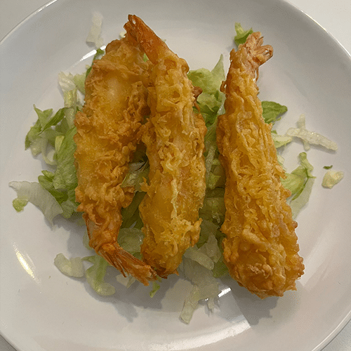 Basis van rijst en/of sla. Met krokante garnaal, mango, wortel, rettich, komkommer, lente ui, sesam mix, masago en wasabi mayonaise. Large is met rode ui